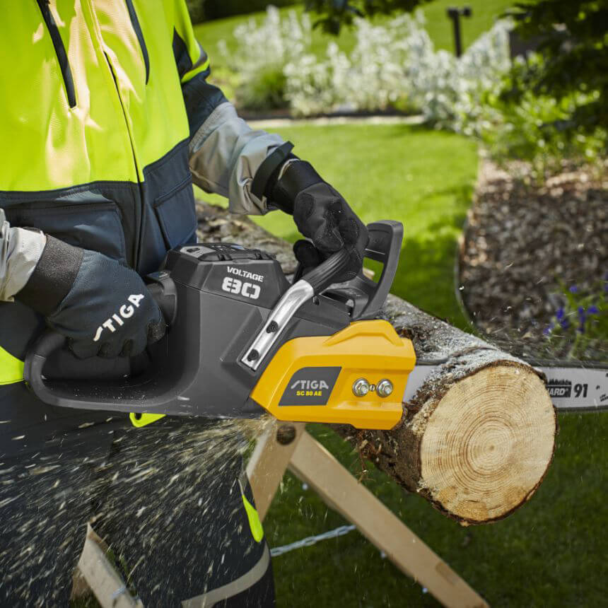 ✔ Вирубка дерев і різка їх в дрова стають дитячою грою. Stiga SC80AE демонструє всю потужність, що поставляється технологією 80 В, використовуючи Li-Ion батареї преміум-класу.