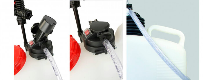 ✔ Бак обприскувача виготовлений із спеціального пластику, що забезпечує захист рідини від ультрафіолетового світла.