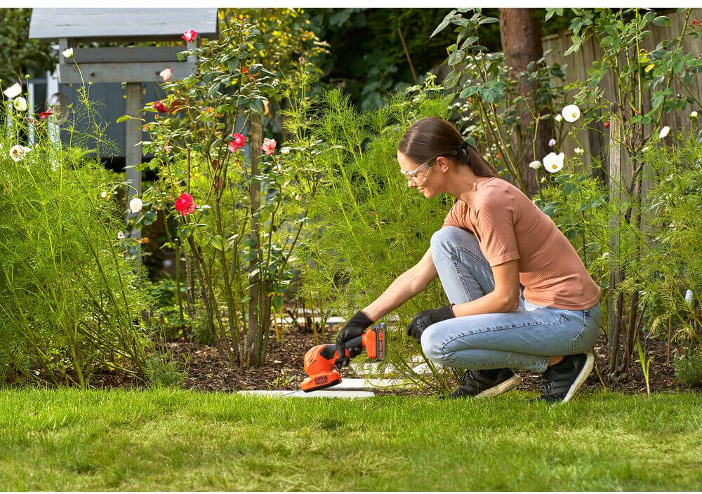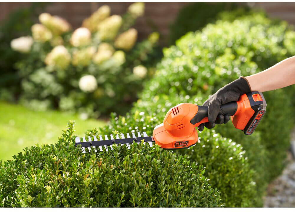 ✔ Кущоріз-ножиці акумуляторні BLACK+DECKER з насадками: кущоріз - 20 см з кроком 8 мм, ножиці - 10 см з кроком 18 мм, підходить для підрізання невеликих чагарників.