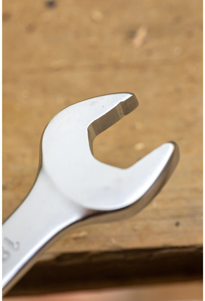 ✔ Обе головки рожкового ключа наклонены под углом 15 градусов к телу ключа для обеспечения оптимального доступа к крепежным элементам.