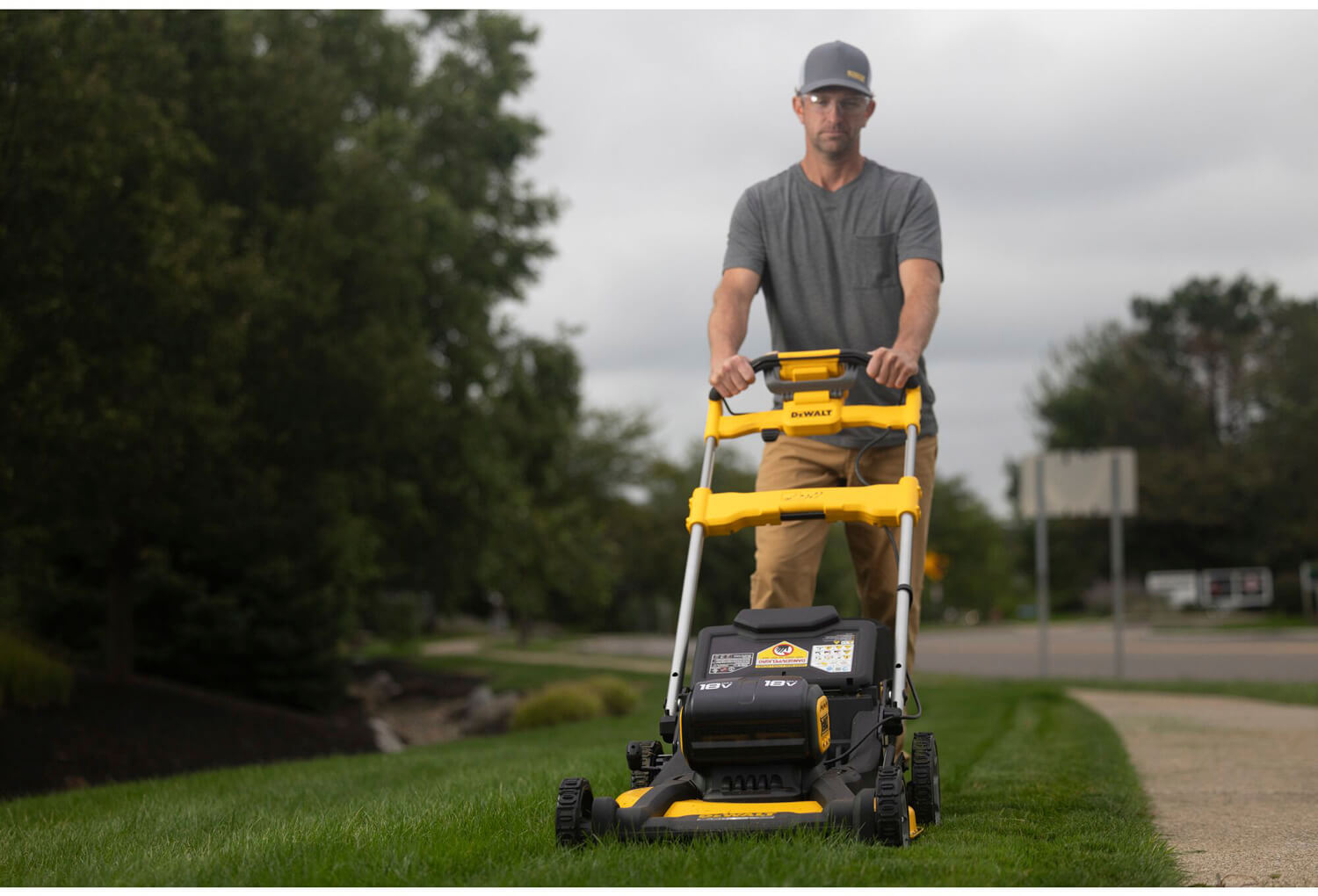 ✔ Час роботи до 64 хвилини при косінні в 5-му положенні висоти косіння на 2 повністю заряджених акумуляторних батареях DCB188 8 Аг.