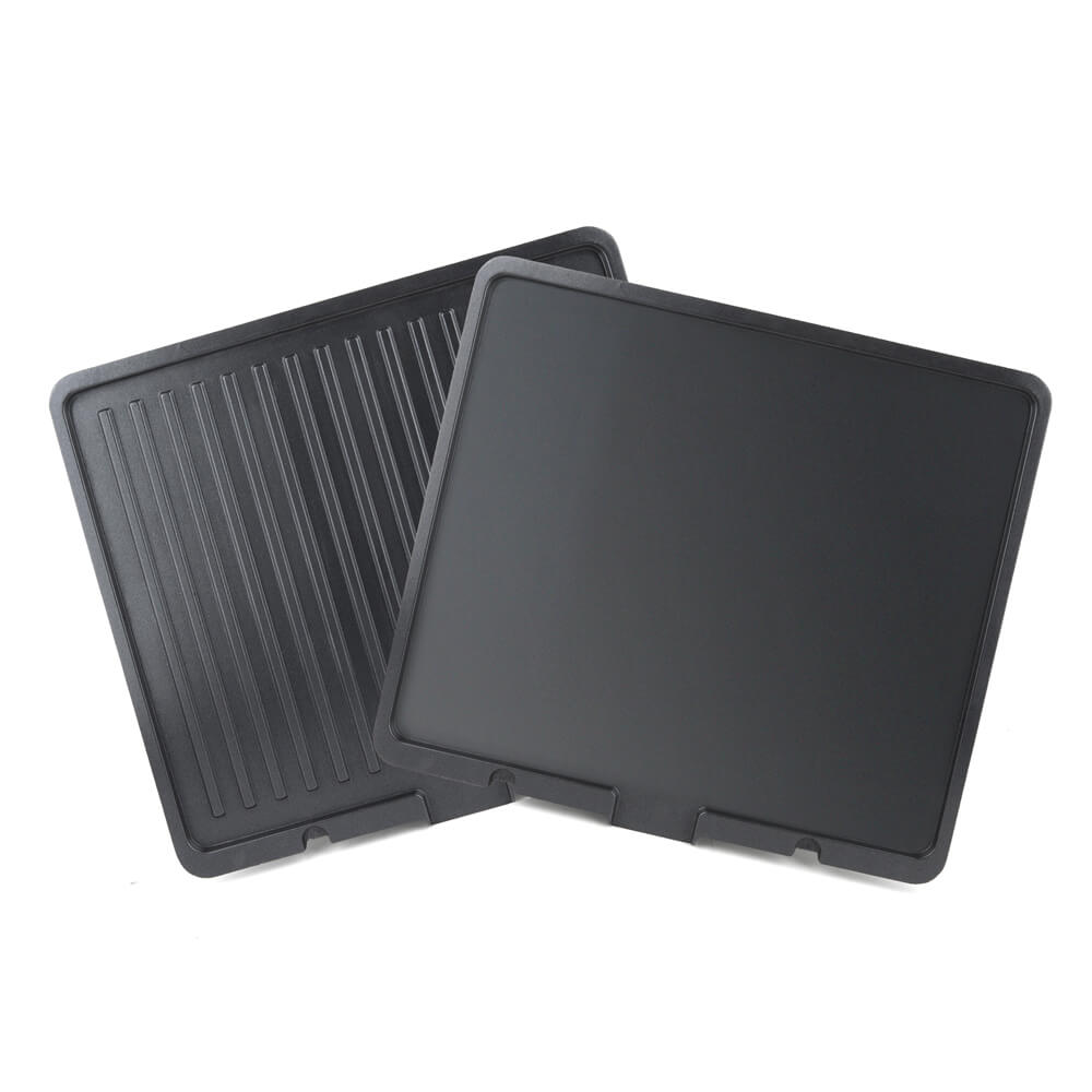 | Комплектація | ✔ 2 ребристі пластини, 1 плоска пластина, піддон для збирання жиру |