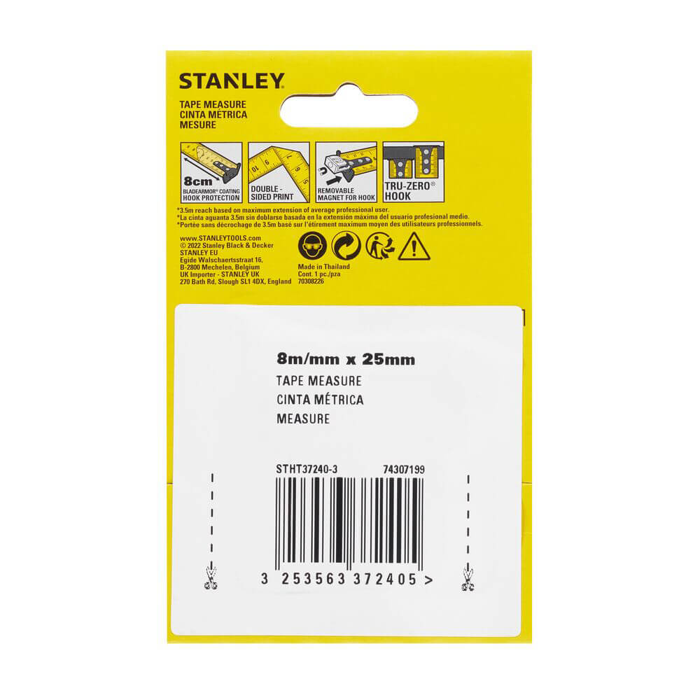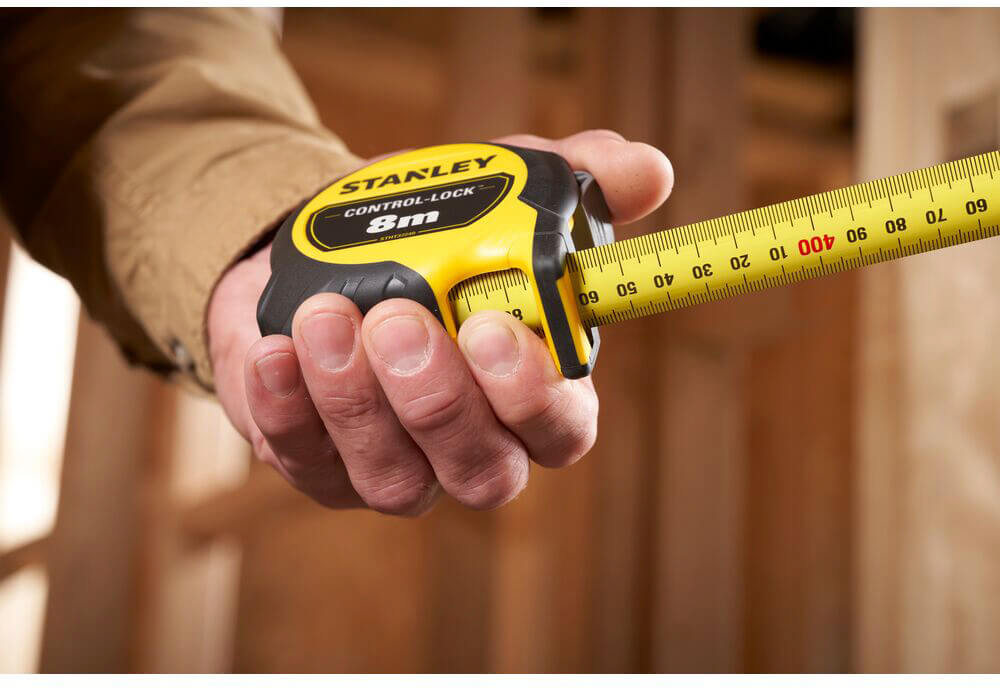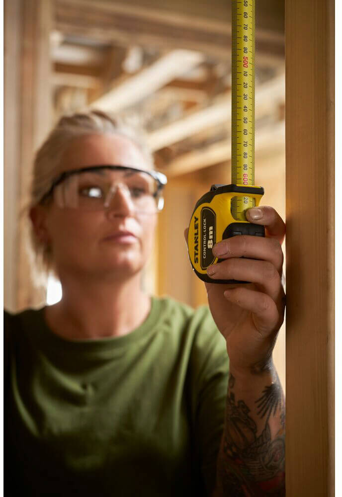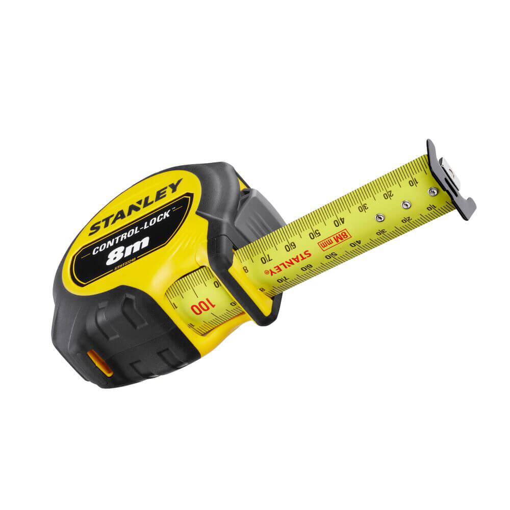 Рулетка вимірювальна CONTROL-LOCK довжиною 8 м, шириною 25 мм, в обгумованому корпусі, з подвійною шкалою STANLEY STHT37240-3