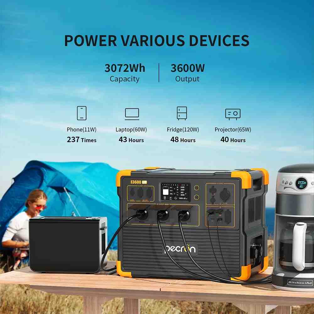 | Комплектація | ✔ Кабель змінного струму 15A х 1; ✔ Однопортовий кабель для заряджання сонячних батарей XT60 - MC4 х 1; ✔ Паралельний двопортовий кабель для заряджання сонячних батарей XT60 - MC4 х 1; ✔ Кабель для автомобільного зарядного пристрою х 1. |