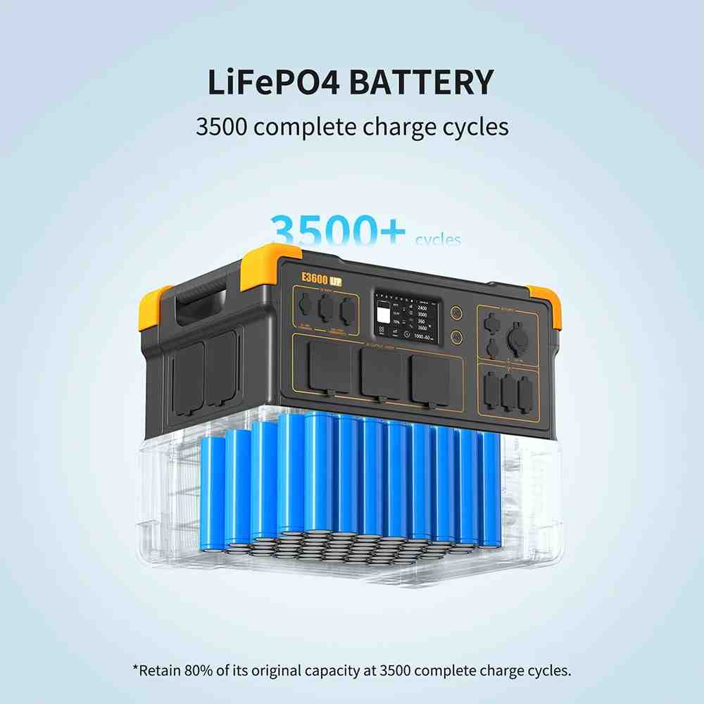 ✔ Тип акумулятора — LiFePO4 з ресурсом понад 3500 циклів до зниження ємності до 80%. Ємність акумулятора — 3072 Вт/год (51.2 В, 60 А/год).
