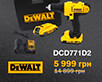 Спеціальна акційна пропозиція на дриль-шуруповерт DeWALT DCD771C2 від спеціалізованого інтернет-магазину будівельних інструментів ЕСКО. Дриль-шуруповерт DeWALT DCD771C2 (клас: промисловий; двигун: електричний; акумулятор: 18 В / 1.3 Ач; максимальний крутний момент: 42 Нм; вихідна потужність: 300 Вт; вага: 1,28 кг). Поспішайте купити дешево зі знижкою 39 % чудовий інструмент - дриль-шуруповерт DeWALT DCD771C2.