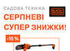 Компанія ЕСКО знижує ціну на найпопулярніші моделі садової техніки BLACK+DECKER. Тепер Ви можете купити техніку для саду зі знижкою до 25 %. Серед акційних моделей: пила ланцюгова акумуляторна BLACK+DECKER GKC1825L20. Газонокосарка електрична BLACK+DECKER BEMW461BH. Кущоріз акумуляторний BLACK+DECKER GTC18502PC. Газонокосарка електрична BLACK+DECKER BEMW471ES. Садовий пилосос електричний BLACK+DECKER BEBLV260.